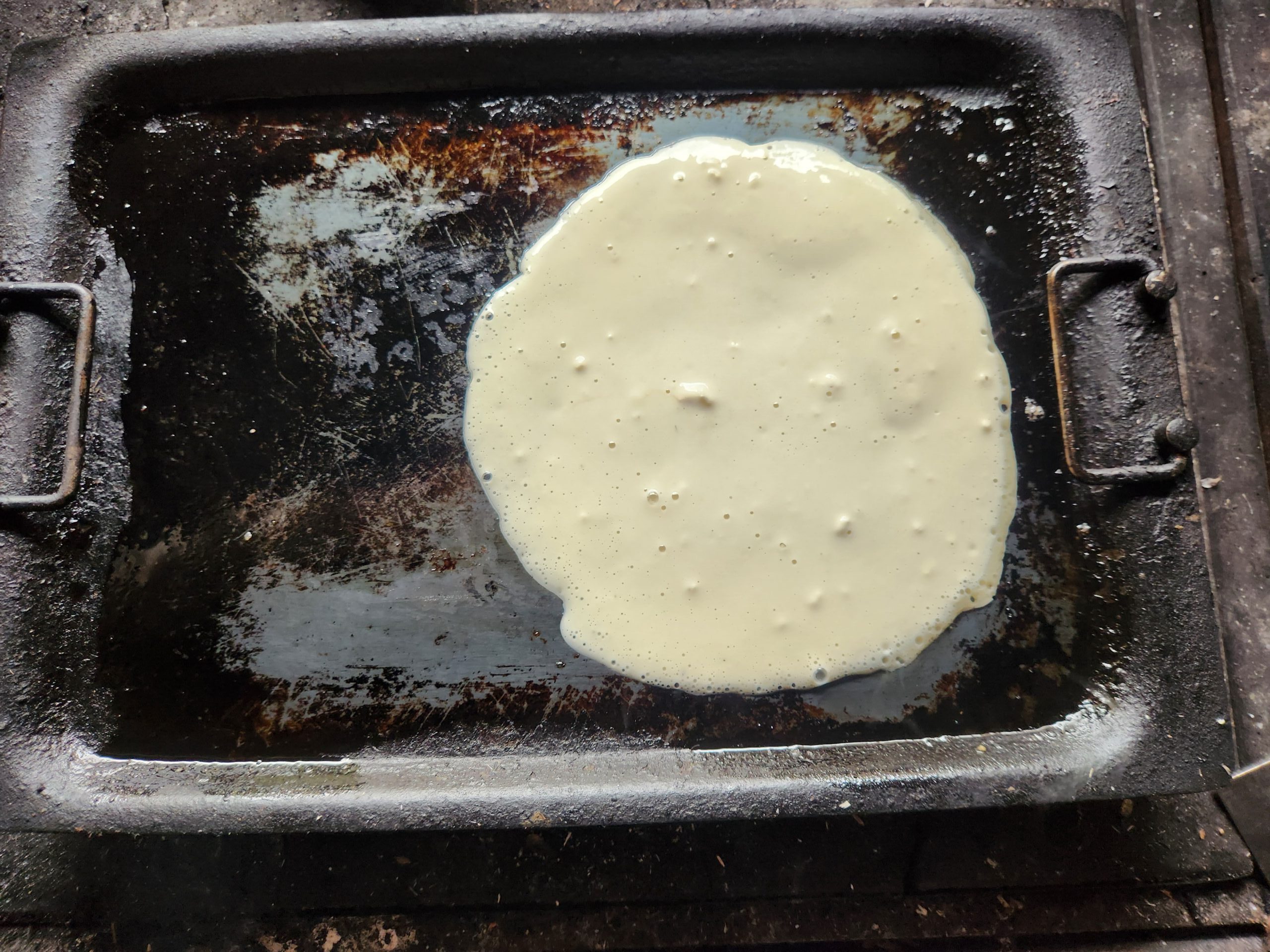 お玉の底で丸く広げておく。