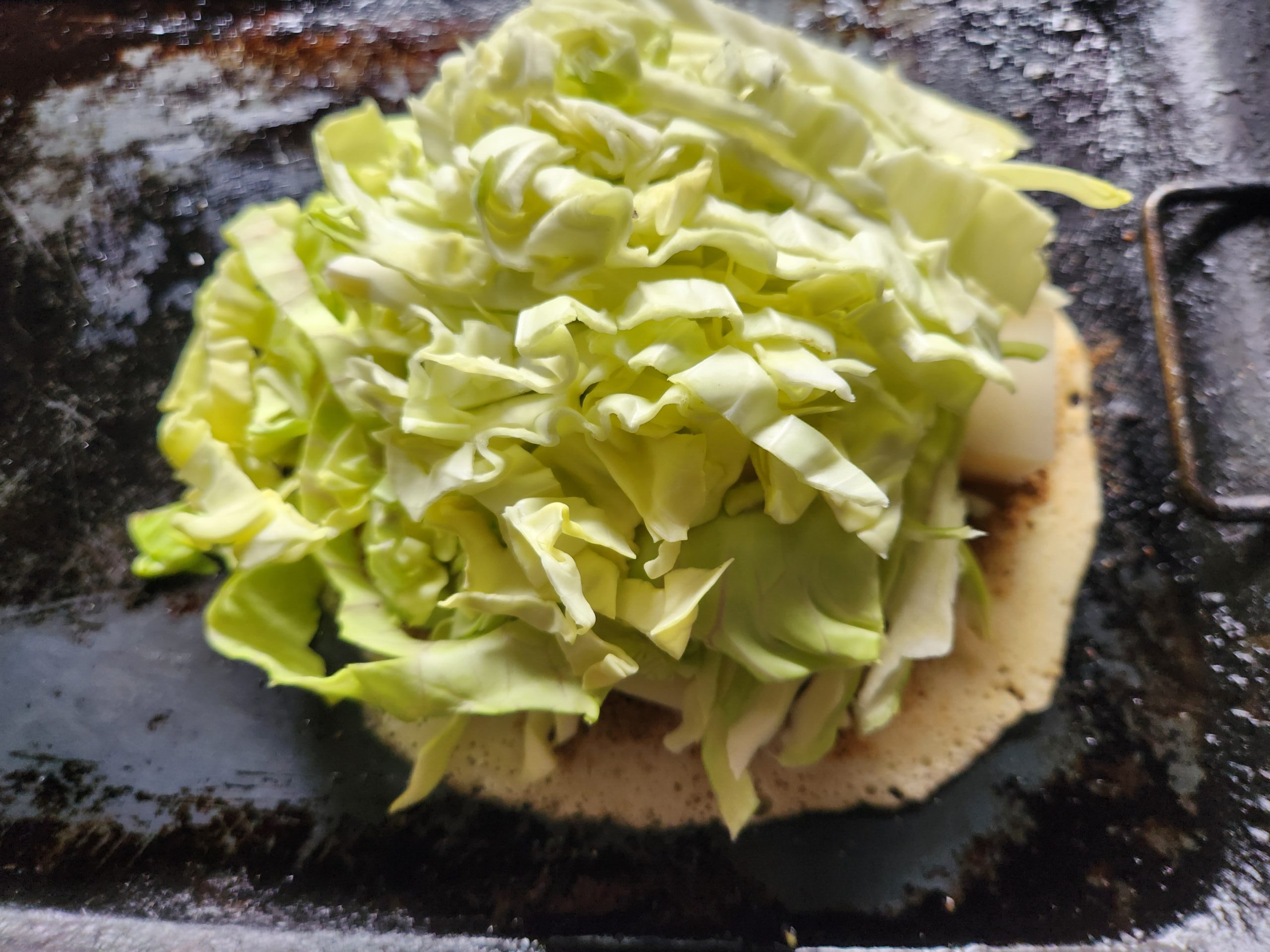 次にキャベツを千切りにして山を作る。