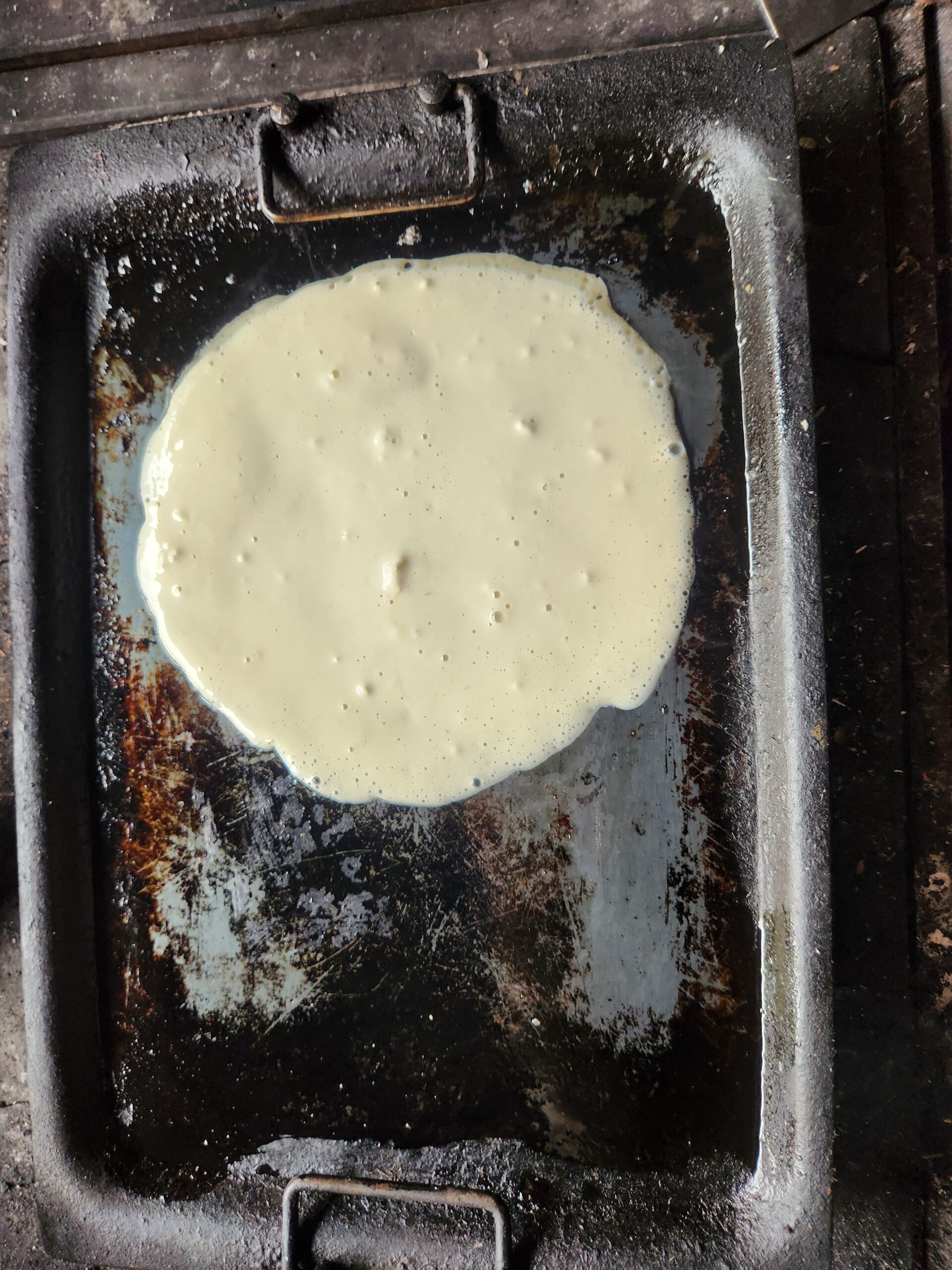 お玉の底で丸く広げておく。