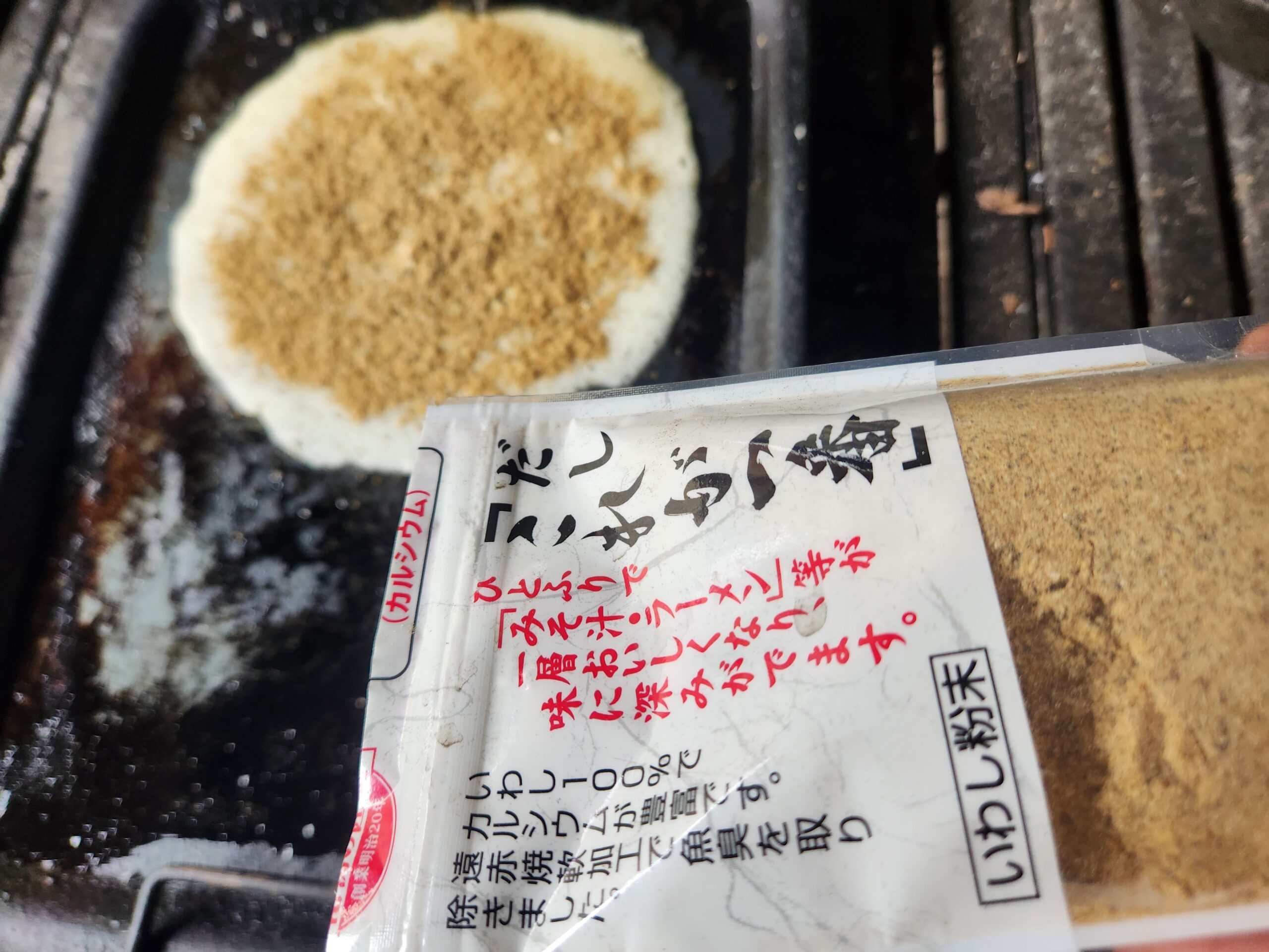 次にイワシ粉を振る。