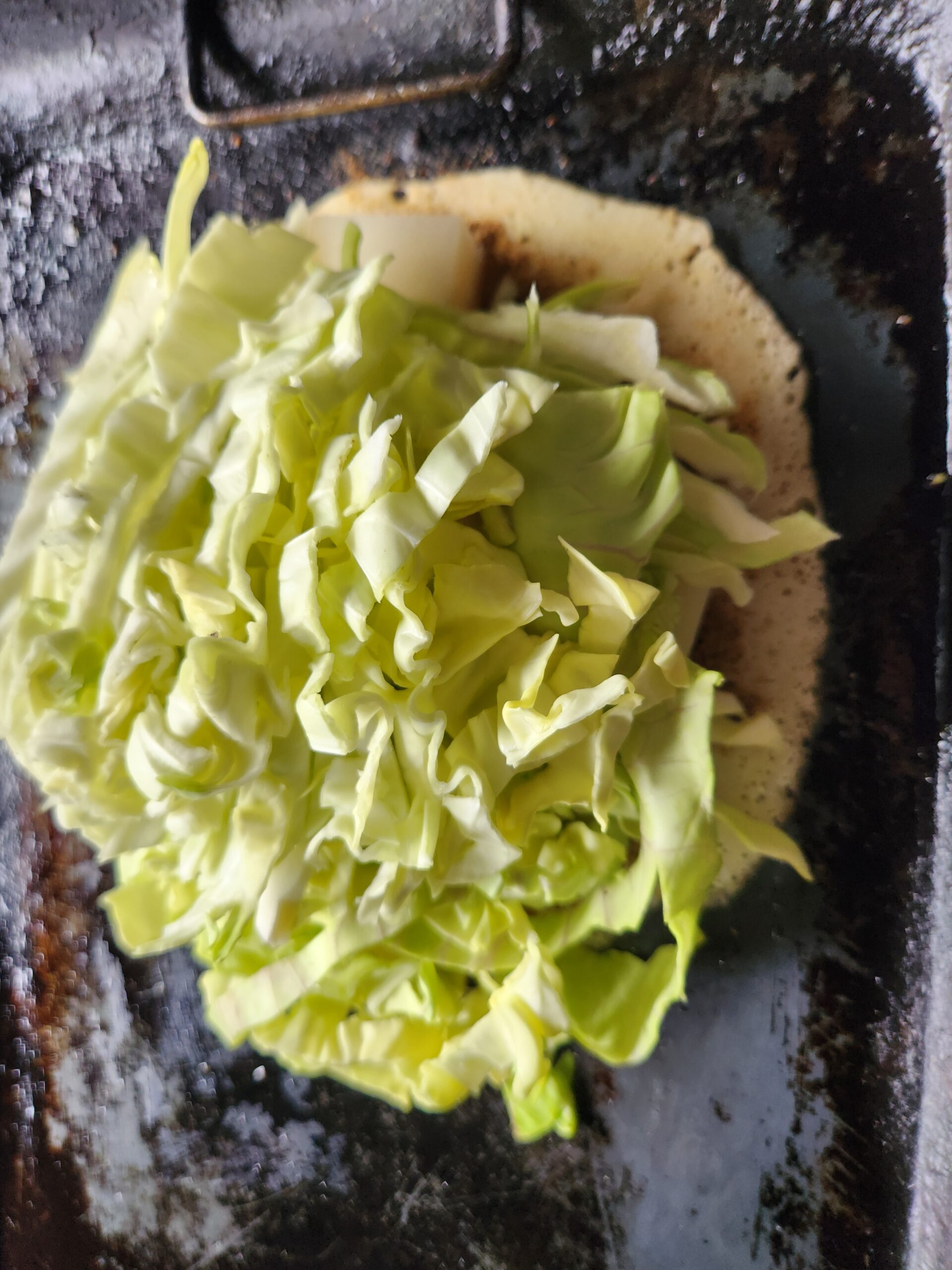 次にキャベツを千切りにして山を作る。