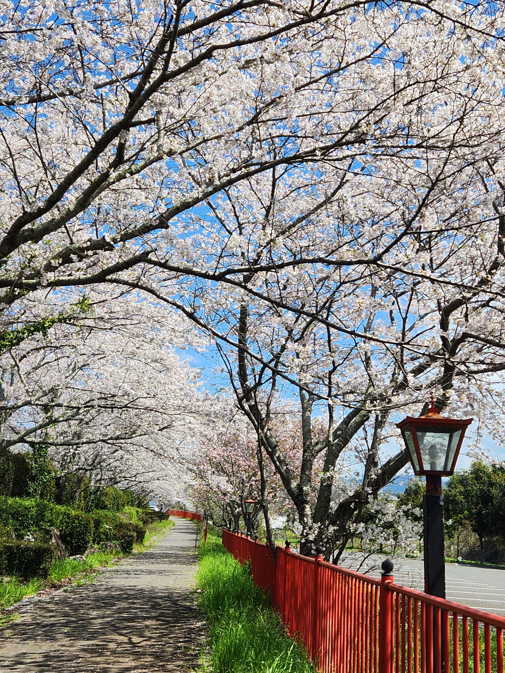 大分でも桜が満開になったので、自転車でお花見に行ってきた。